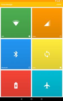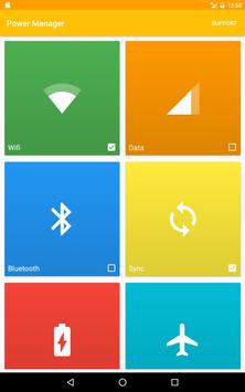 application which helps to control your device's power usage. It does so by turning off things like Wifi, Data, Bluetooth, and Auto Sync when your device is off and not being used. Power Manager can be configured to be more