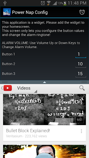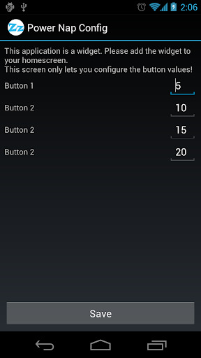 Current version allows you to configure the 4 buttons on the widget to any number of minutes you want. You are no longer restricted to 5, 10, 15 or 20 minutes. There is a tap-and-talk button that lets you verbally set an alarm.
