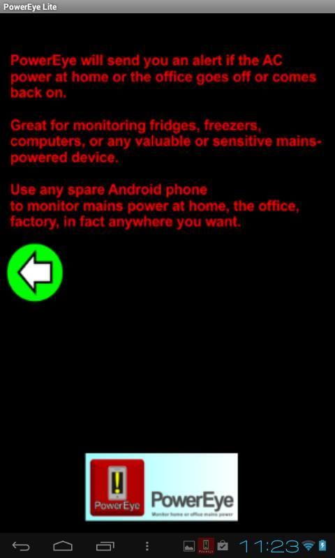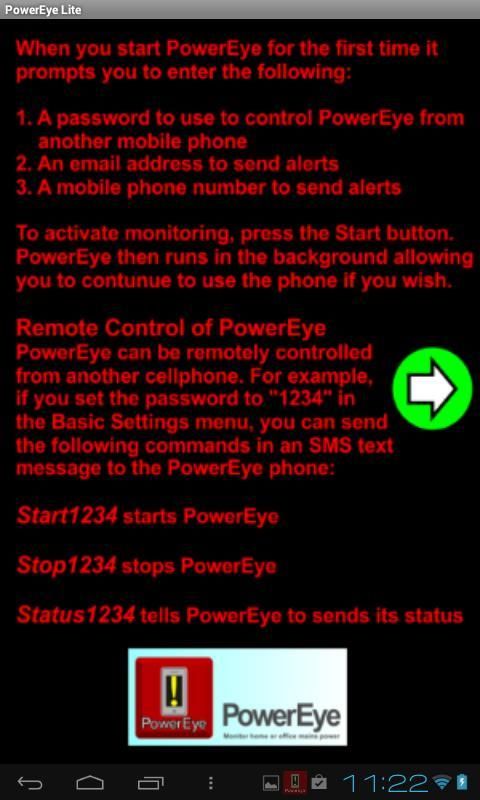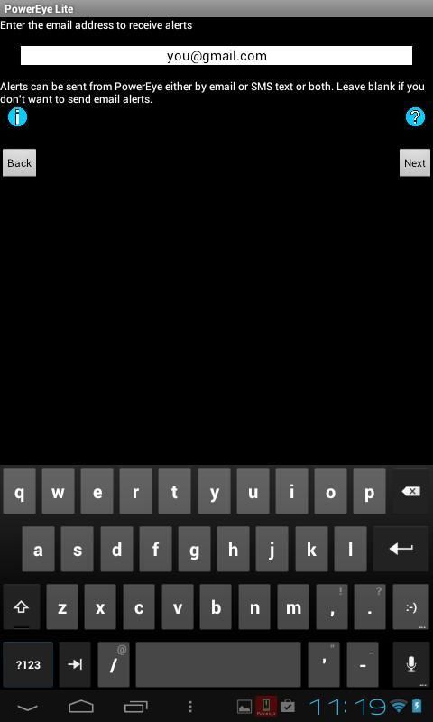 Since PowerEye is a monitoring application it requires an email address and/or another phone to which it sends SMS text message alerts. PowerEye does require a dedicated Android device; use an old unit sitting in a drawer or buy a cheap Android phone to alert you to power outages.