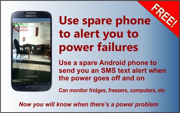 Use any spare Android phone to monitor AC mains power failures or outages at home, the office, factory, in fact anywhere you want. It works in the background on your Android device and will continue monitoring when the screen blanks and the device goes into sleep mode.