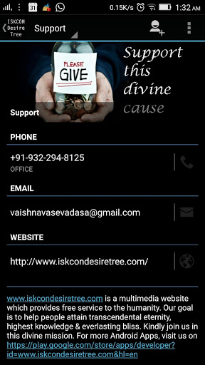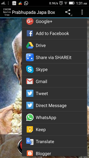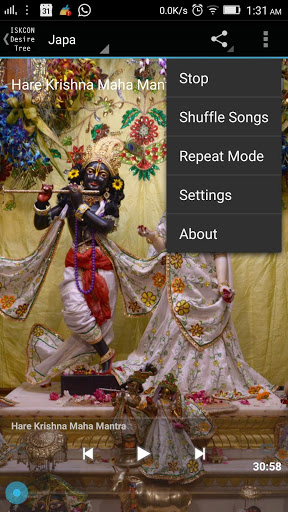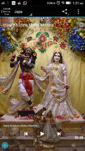 Your mobile becomes a continous chanting box playing transcendental chanting of mahamantra japa by Srila Prabhupada, founder of ISKCON.