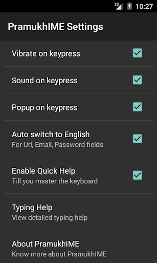 You can refer to "Quick Help" by pressing bottom left icon key which acts as a quick reference point for your typing needs. If you need to dig more into the details, you can long press bottom left icon key to go to "PramukhIME Settings > Typing Help > Your Language.