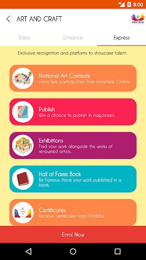 PRATIBHA is India's first holistic app to nurture and grow extra-curricular talent. Helmed by the ABP group, this initiative promises to create an exciting platform that will help youngsters Enjoy and learn exciting courses, Enhance their skills from anywhere, anytime, and Express their talent through a range of great platforms.