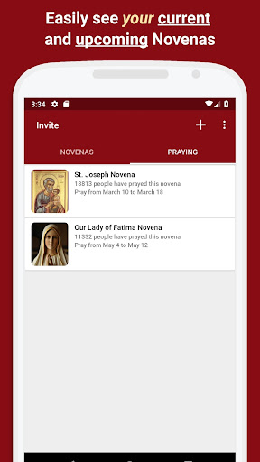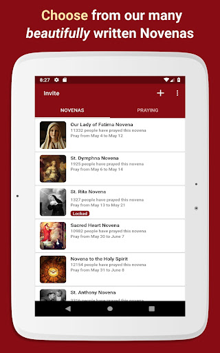 Millions of Catholics have had their prayers answered by God by invoking the intercession of the great saints of the Church. Jesus said, "where two or three are gathered together in my Name, there am I in the midst of them." The Pray app enables friends and communities to pray novenas together for specific intentions.