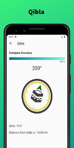 Qibla compass (Qibla indicator): Find the exact direction of Qibla according to your location.