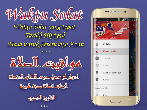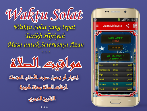 - Hiển thị Thời gian của Azan Malaysia đúng giờ (thời gian biểu cầu nguyện Malaysia).