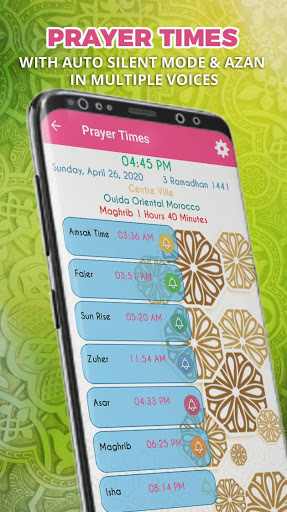 * Customizable azan before prayers, you can choose from a list of azans or your file from SD card, can be customized for each prayer.