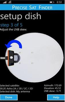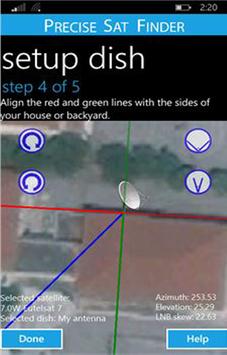 Precise Sat Finder is a powerful tool that provides reliable directions for satellite antenna installation. It utilizes your phone's sensors combined with map information in order to augment accuracy and minimize errors caused by the antenna metal parts or nearby magnetic fields. Internet connection is required for some features. Trial version offers full functionality for a limited list of available satellites.