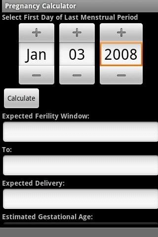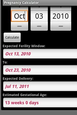 This is A pregnancy calculator based on the American Pregnancy Association Website.This still version 1 0 More features to be added in the future.