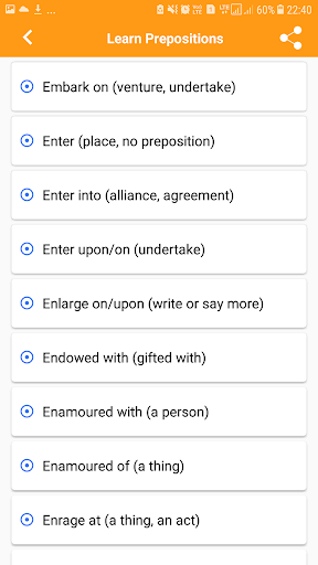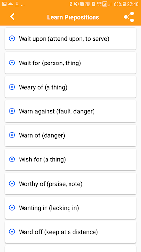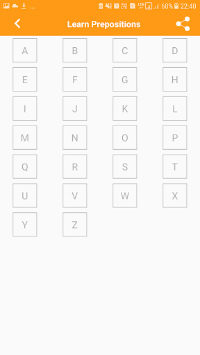 English Preposition App provides you A-Z prepositions in English Language. Features include:- 1. A-Z Preposition 2. Letter wise ordered Preposition. 3. with Example.