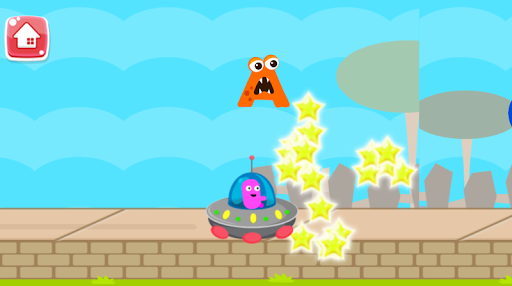 -In this game there is an alien there is spaceship flying towards alphabets letter, when it hit the alphabets they pronounce their names. kids have to tap on screen to make spaceship up in the air.