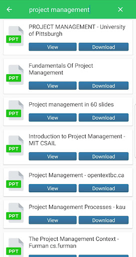 This ppt downloader is quite handy tool that lets you to search for the ppt files in a single click. The most relevant ppt are shown to you as top results and those ppt presentation files can be visited in your browser. PPt files are really handy when you want to demonstrate people about your thoughts or some projects or this ppt files, presentation files can be valuable for getting idea for you school or college projects. So by searching your topic the presentation files can be viewed idea can be generated from it so that you can create your own ppt files in your pc. Ppt downloader is one of the most searched results on internet as of today because ppt files download is needed for businessman, kids, students and many people for their workflow. Due to this we bring you the most easiest and having more feature app where you can get almost anything. PPT downloader is one way where you can get idea's from other and idea's for presentation for project. Get in the search bar for ppt search, type your presentation search topic there and click search button to find or search ppt files on the go. We are ppt search engine and help you to get the most relevant search results with your powered search and thus we list out all the presentation files that you want. This ppt downloader is a lite version where search and visiting those files in browser are more focused. PPt can now days include much information about today's world's trending topic and where you can also get a summarized note for those presentations you are searching for. PPt finder is search engine for ppt files and you can get the most relevant results with these presentation files by searching by this free ppt searcher and downloader and downloading the ppt files of your choice. We list out your choice of presentation files according to your topic and list them out so that you can download the most relevant presentation ppt file for free.