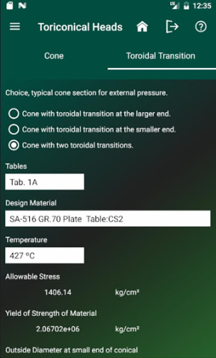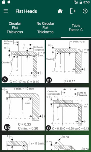 Modulus of Elasticity, Weld Joint Efficiencies Coefficient (UW-12 ASME Sec. VIII Div.1), ‘C’ Factor (ASME VIII Div. I UG34), B Factor (Subpart 3 of Section II, Part D), A Factor (UGO-28.0 ASME Sec. VIII Div.1), The Yield Strength of the Material at Design Temperature and other data required for calculation.