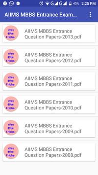 This application contains AIIMS MBBS Entrance Previous pdf files of previous years quetion papers with key of each papers.