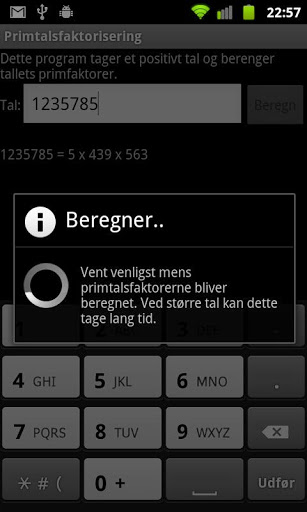 This application takes a number and attempts to find the prime factors for it. This can take a long ting with big numbers.