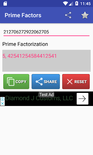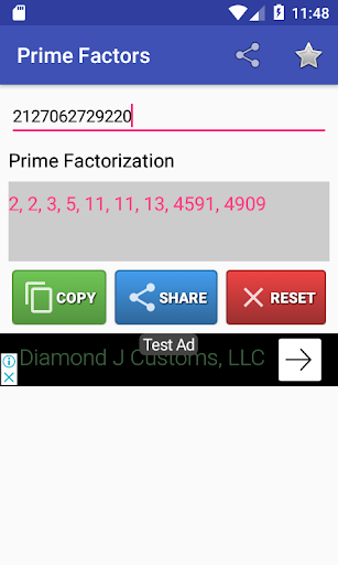 This app will instantly provide prime factors for an entered number up-to 9,223,372,036,854,775,807. Let us know if any update is needed.