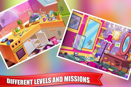 - Variety of rooms to clean including bedroom, living room, kitchen, bathroom and fashion makeup room.