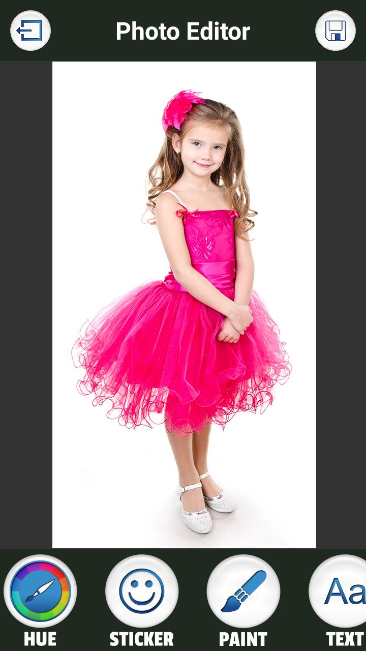 You can set as photo widget and use pictures as wallpapers. Open your virtual wardrobe and choose the top dress photo suit in order to make the cutest little girl photo montages.