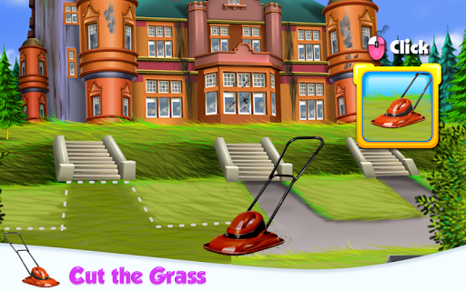 A little party never killed nobody and you are going to prepare a castle for a party in this princess game, but no any kind of party, the one you have fun with a special grill and a lot of guests. If you want it to be a huge success you need to be focus and go right away to work because the backyard of the castle is a mess and the food is not ready. Start with the cleaning part: grab the branches and put them in the garbage can, clean the central lane from the leaves, then use the lawn mower to get the surplus of the grass away, cut the bushes and shape them proper, wash the walls of the castle and make them look like new, paint the damaged parts and don’t forget to replace the broken windows.