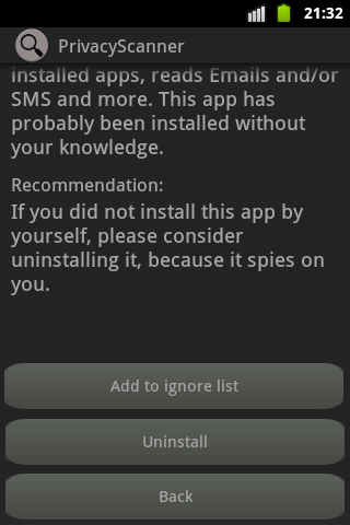 Privacy Scanner Antispy Free: A free mobile anti spy app