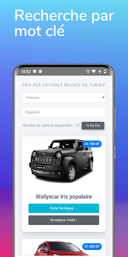 If you want to change or buy a new car and you want to have an idea on the prices of cars on the Tunisian market our application allows you to consult the list of prices of new cars available in Tunisia