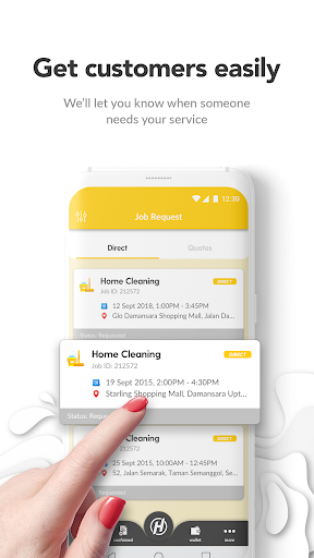 Consumers answer a set of questions about their job, including the location, timing and the specific details. You can look at requests in your area (for free), decide which ones are relevant to you and (for a small fee) provide a quote. Consumers will accept your quote if they are happy with the details, price, your business profile and your past reviews. You can then use in-app chat (or call/SMS) to finalise the details of the sale!