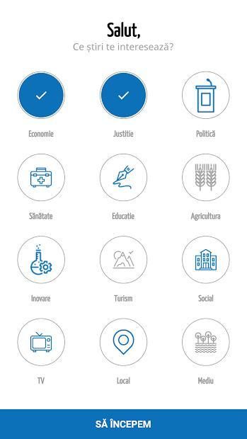 Aplicatia da utilizatorilor posibilitatea de a selecta mai multe categorii de stiri, in functie de domeniile in care utilizatorii aleg sa primeasca informatii, presonalizand astfel fluxul de stiri primite.