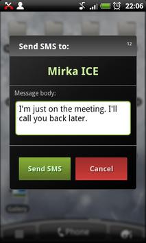 - Show screen "Send SMS" after reject calls