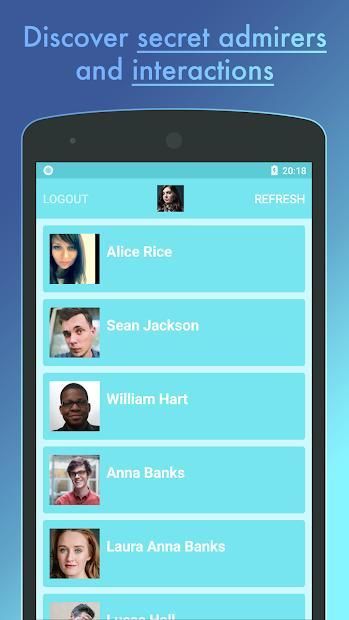 Discover your secret interactions with strangers. This list shows profiles who you viewed most, interacted most and checked recently. Among these strangers you will find your secret admirers, people you admire most, your secret fans, your old and lost friends and many more.. So be careful!