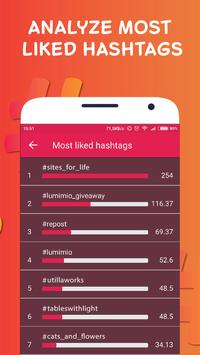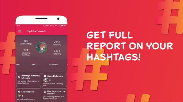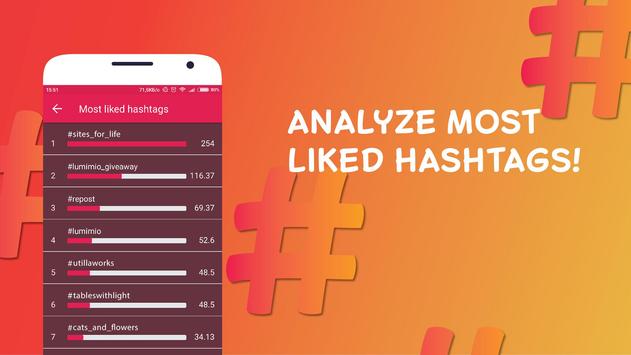 You even gest the list of unfollowers for instagram. Open personal analytics for instagram accounts. In addition, you will show you statistic of Hashtags!
