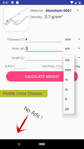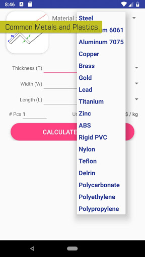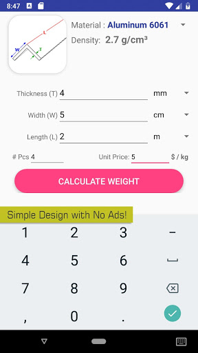 You can estimate the weight and price of the row material with just few taps without being bothered with confusing ads.