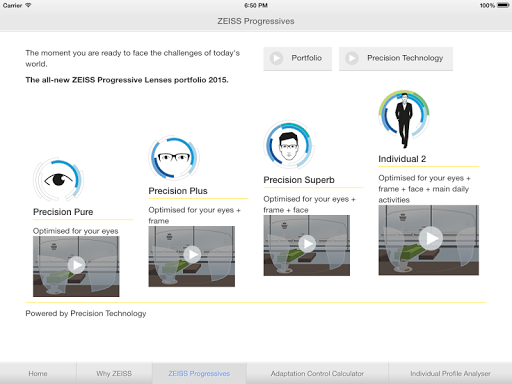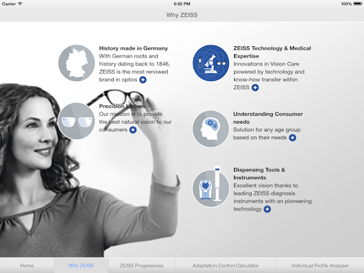 The ZEISS Progressive Lenses app is an easy-to-use application designed to help you up-sell, attract and retain customers when dispensing the new ZEISS Progressive Lenses.