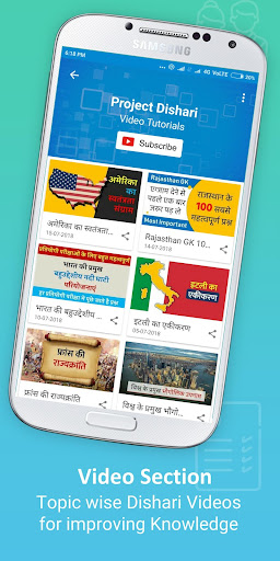 Project Dishari App contains General Knowledge, Current Affairs, Math, Reasoning, Rajasthan GK, History, Science, Geography, Hindi Grammar, and Computer Awareness with Online Tests and Job Alerts.