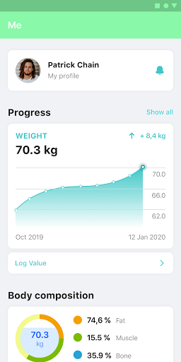 - You get insight in everything: from burned calories to total minutes you exercised, and distance traveled. You can track your progress over time: weight, waist size, BMI, body fat, number of pushups, arm size, chest size, VO2max and many more.