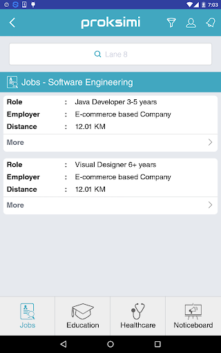 Proksimi helps you build your life around the proximity of where you live. It brings a curated set of information that is location-specific. This includes JOBS, EDUCATION, HEALTHCARE and a NOTICEBOARD to tune into all that's happening around you !!!