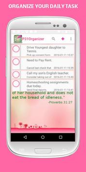 Proverbs 31: Daily Organizer is our task manager app, inspired by the bible verse Proverbs 31: 27,"She watches over the affairs of her household and does not eat the bread of idleness".