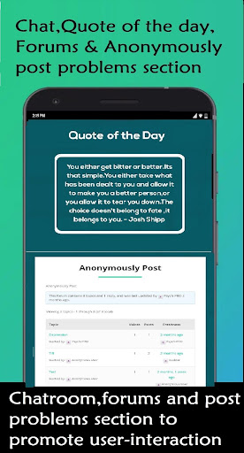 The app includes Features such as Anonymous Problem Posting, Quote of the day,Chat-rooms, Forums,Nutrition & Supplements information,Books to read,Motivational Articles are included.