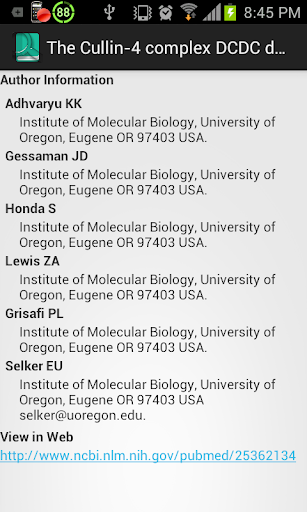 PubMed Search App by Sloft allows to search from PubMed online search. This app provides an easy user interface to search and view the documents. Title, abstracts , author information and web link to PubMed document.