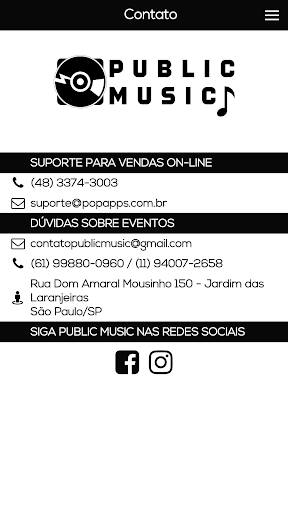 Baixe o Aplicativo e cadastre-se na Public Music para gerenciar suas compras para as melhores festas do país. Pelo aplicativo você terá toda facilidade de sua compra online sem a necessidade de impressão. Toda validação da suas entradas serão através do aplicativo e QRCode.