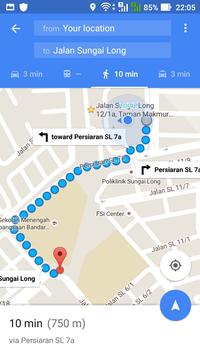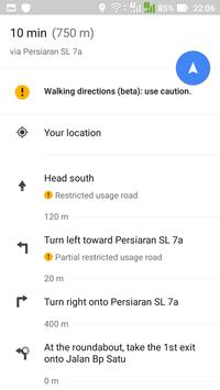 * start walking to the transit from your current location when click on the driving navigation icon at right bottom of the map.