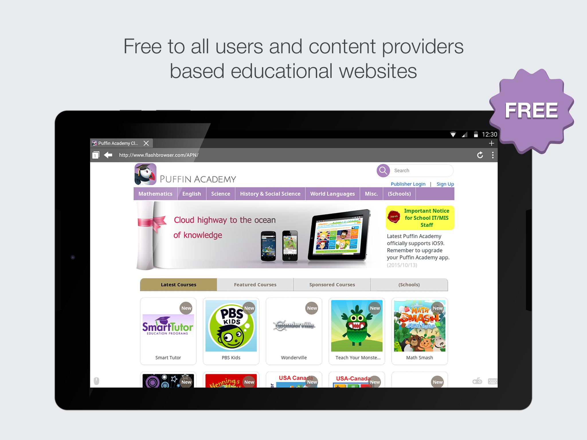 Puffin Academy is a wicked fast Mobile Flash Browser for K-12 students, teachers, and parents.