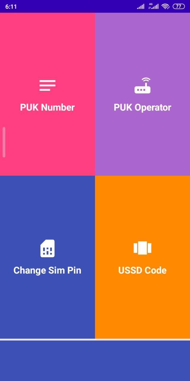 This Puk unlock code app has mainly 4 Parts that has USSD codes also included with it