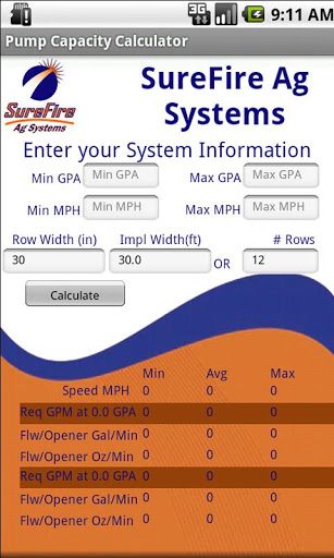 This tool calculates the pump capacity required to apply your desired fertilizer product. The calculator uses the speed of application as well as the amount of application in GPA to give a base GPM capacity. This base GPM range required can then be used to select a pump that would best meet your needs.