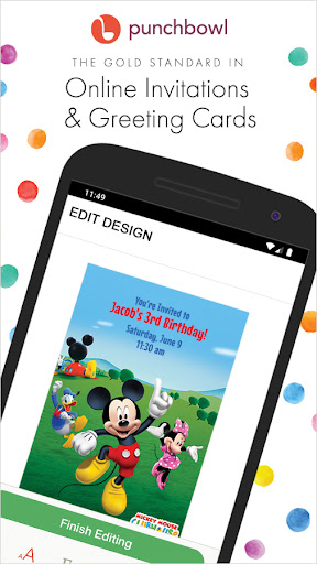Personalize and send beautiful invitations and greeting cards for FREE with Punchbowl®. Choose from thousands of party invitations including the largest selection of kids character invites. Exclusive designs feature Mickey and Minnie Mouse, Frozen, Avengers, Despicable Me, Elmo, PAW Patrol, Peppa Pig, Trolls & more! Invite guests by email or text message and track RSVPs on-the-go. Send thoughtful free eCards for birthdays, holidays, to say thank you, or to express care and concern. The MUST HAVE app for busy parents, Punchbowl has been featured in publications such as Parents, Real Simple, O Magazine, Ladies' Home Journal, and Women's Health.