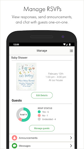 • Advanced features allow you to set up a Potluck List, add a Poll, add a Co-Host & more
