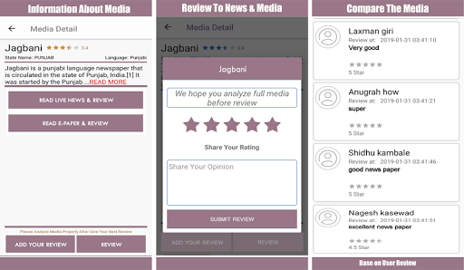 App Is providing the user review audit and rating system, User Can Upload the media and News and others will provide his opinion and rating on News and media with the rating.
