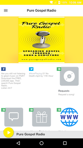 I love Pure Gospel Radio, I have the app on my phone and on the 60" screen with surround sound, its like heaven,in my garage, or the house it's a blessing, although the app sometimes does go offline,but it would have been 3hrs or more of playtime,so just tap the app for more blessed music.