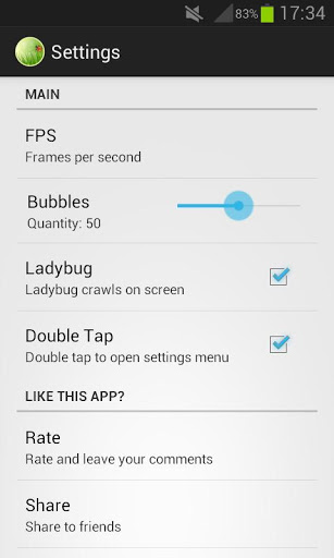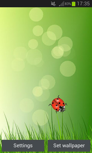 Beautiful spring view with oscillating grass and a lot of tender moving bubbles. Awesome shades of green will give you nice emotions and pure feeling of nature always and everywhere. Cute ladybug, that crawls on the screen, does not give you bored!)