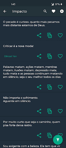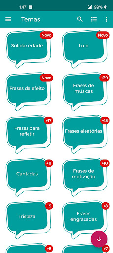 Chỉ ở đây trong tay, bạn có tìm thấy những cụm từ và tin nhắn tốt nhất!Cơ sở dữ liệu đầy đủ nhất với mọi thứ bạn cần nói chuyện với bạn bè, chúc mừng và thậm chí là tán tỉnh!Ứng dụng có hơn 21000 cụm từ và tin nhắn để bạn vui chơi.Vẫn có các GIF khác nhau để chia sẻ.