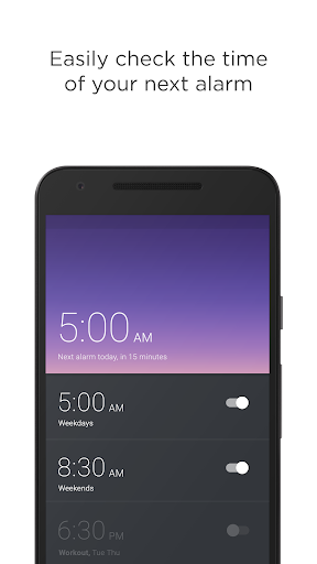 ⏰ Easy to use. Everything is in front of you. Setting alarm and everything else is very easy, and you don't have to be a tech master to use this app. It has a real easy and user friendly interface and anyone can use it with no trouble whatsoever.